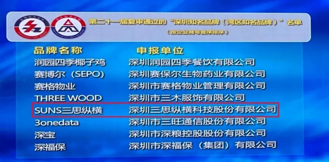 “深圳知名品牌”评选活动由深圳工业总会联合相关部门、行业协会、专业机构和传媒机构等共同开展的推动企业做品牌、创名牌的公益性活动,迄今已持续开展20多年。旨在表彰在深圳市具有较高知名度和良好口碑的企业品牌。评选活动围绕企业核心竞争力、创新能力、品牌建设、社会责任等方面进行全面评估,获奖企业均具有鲜明的地域特色、较高的产品品质和强大的市场竞争力。此次复评,三思纵横在众多企业中脱颖而出,再获“深圳知名品牌”,“湾区知名品牌”荣誉称号,充分体现了公司在技术创新、产品质量、市场服务等方面的优势。这是对三思纵横过去取得成绩的肯定,更是对公司未来发展的鼓励和鞭策。我们将继续不断提升品牌价值,为客户创造更多价值。