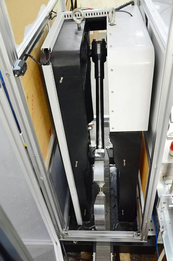 该试验机为高低温送样和冲击试验于一体,配备专用自动送样装置进行自动送样,采用端面定位的方法使试样对中,确保试样完成高、低温设置后,从温控室中出来到冲击完成时间约3到4秒,单个试样冲击整个周期只需约10秒左右,提高试验精度及工作效率。试样到位后对试样的辅助定位气缸,采用辅助气缸压到试样后,是向下的方式脱离试样,从而实现精准定位。