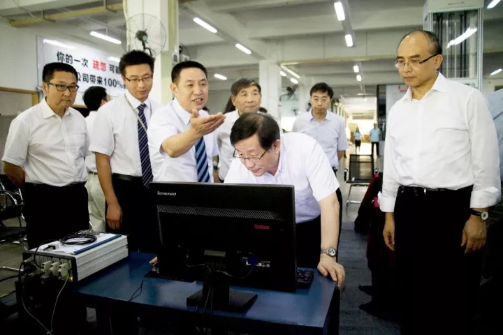 时任国家科技部部⻓万钢与深圳市市⻓许勤视察三思纵横